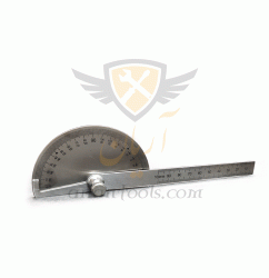زاویه سنج و نقاله فلزی، دارای خط کش فلزی و پیچ برای ثابت کردن زاویه تیغه